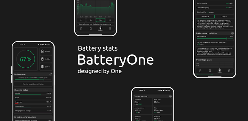 You no longer need to clutter your phone with multiple utility apps. Battery One combines every essential feature—health tracking, usage statistics, capacity calculation, and wear prediction—into a single, seamless interface. We prioritize your user experience by ensuring our app remains free of intrusive ads, allowing you to focus on maintaining your device without distraction. Download Battery One today and take complete control of your phone’s future.