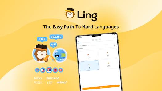 Ling designs many courses for languages that challenge learners with new scripts or unfamiliar sounds. You can focus on practical phrases and vocabulary that fit real situations, and you can turn on transcription when you need extra support. The app also includes writing practice so you can learn characters and spelling actively rather than only recognizing them.